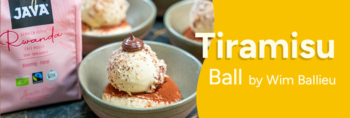 Une boule tiramisu : le grand classique italien revisité ! Le chef Njamtv Wim Ballieu, connu pour son restaurant Balls & Glory, a imaginé cette recette festive. Et pas de tiramisu sans café ! Pourquoi Wim choisit le café Rwanda de JAVA ? Préparé en cold brew, ce café riche en saveurs sublime parfaitement le boudoir. Curieux ? Lancez-vous avec la recette de Wim !