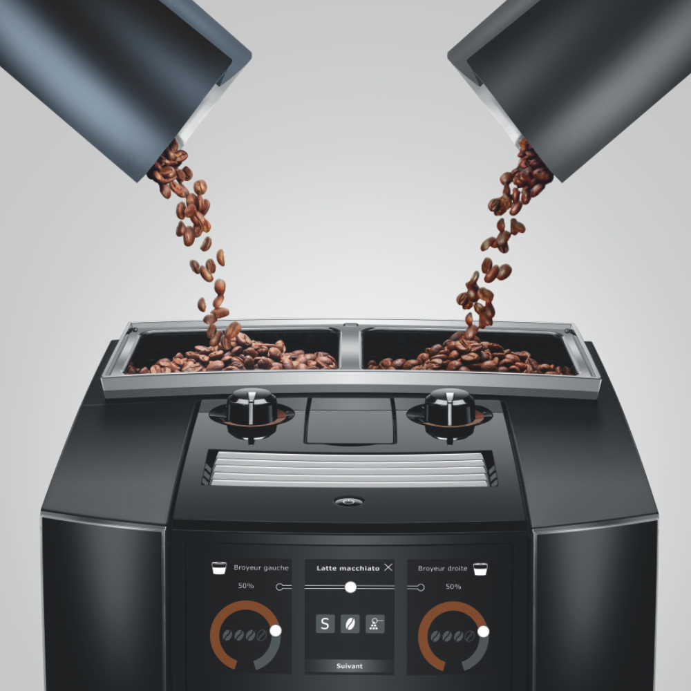La nouvelle J8 twin offre des performances doubles avec une flexibilité maximale. Une spécialité de café avec ou sans caféine ? La J8 twin de JURA est équipée de deux moulins de précision.